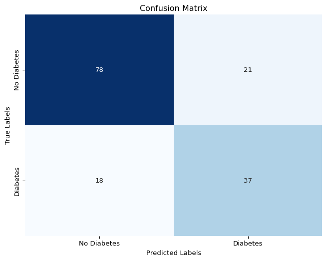 plt.yticks([0.5, 1.5], ['No Diabetes', 'Diabetes'], va='center')